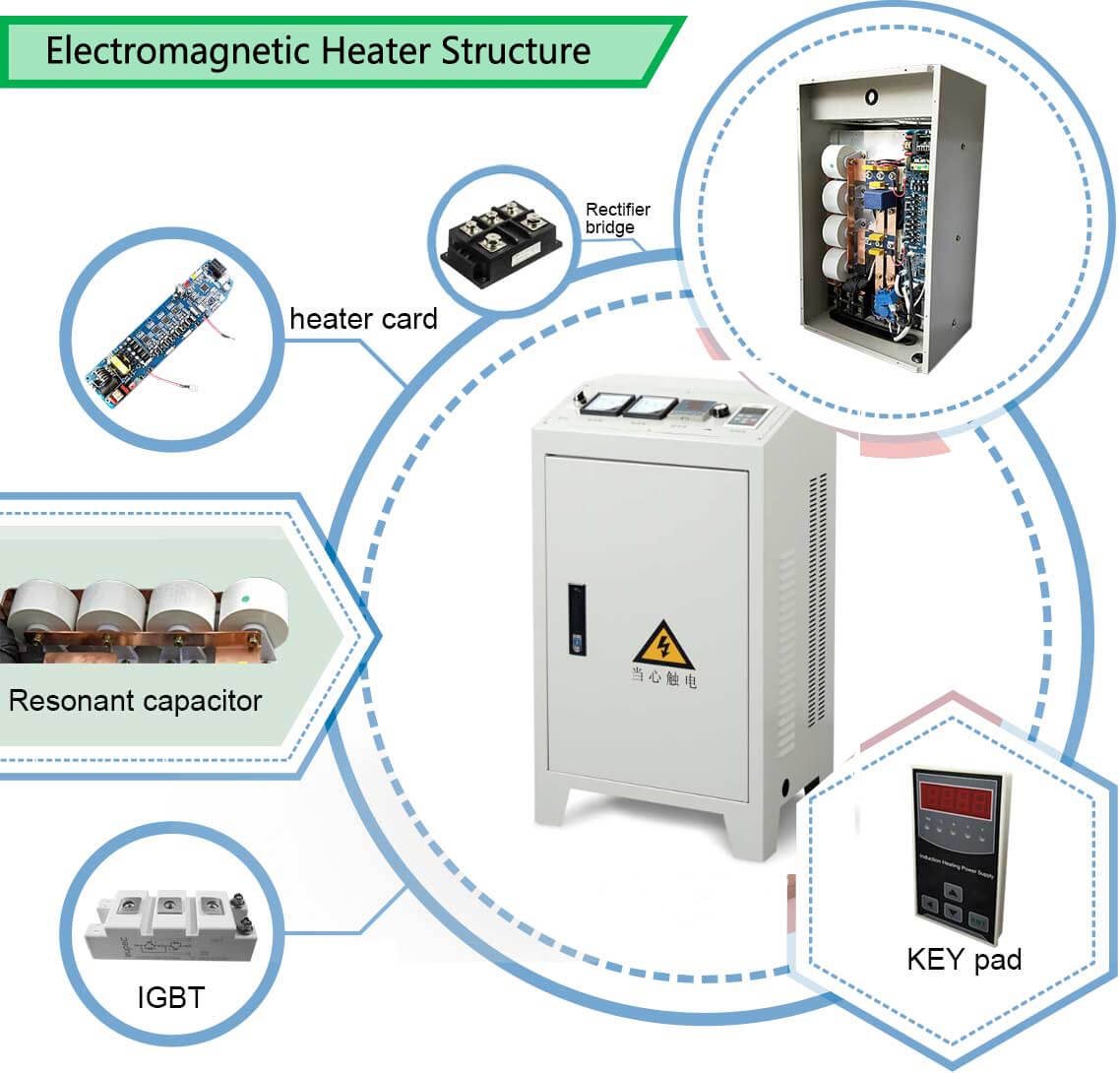 80KW electromagnetic heating equipment can improve the working environment, increase production efficiency and reduce production costs. The machines have the ability to guaranty product quality, producing fire-free safety.